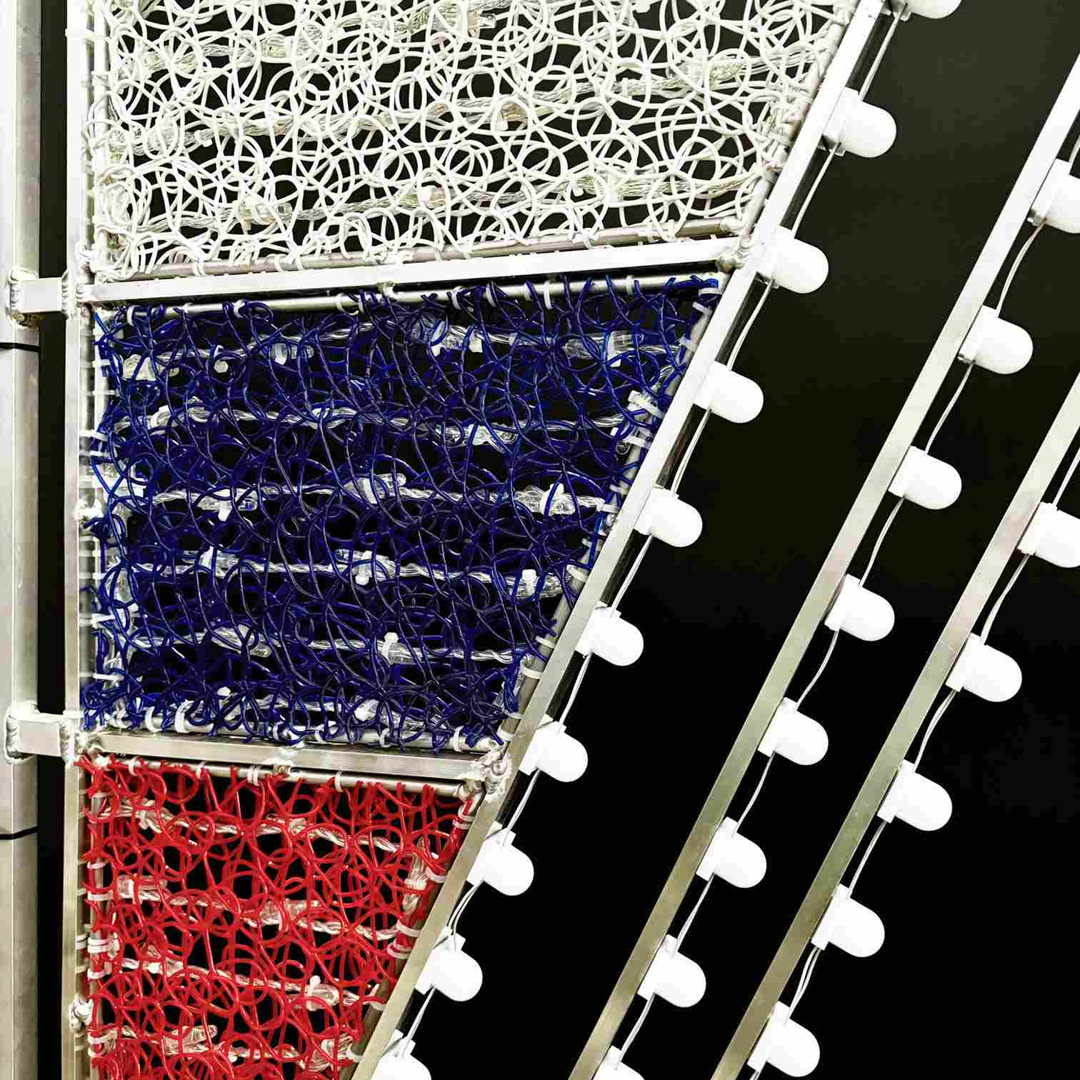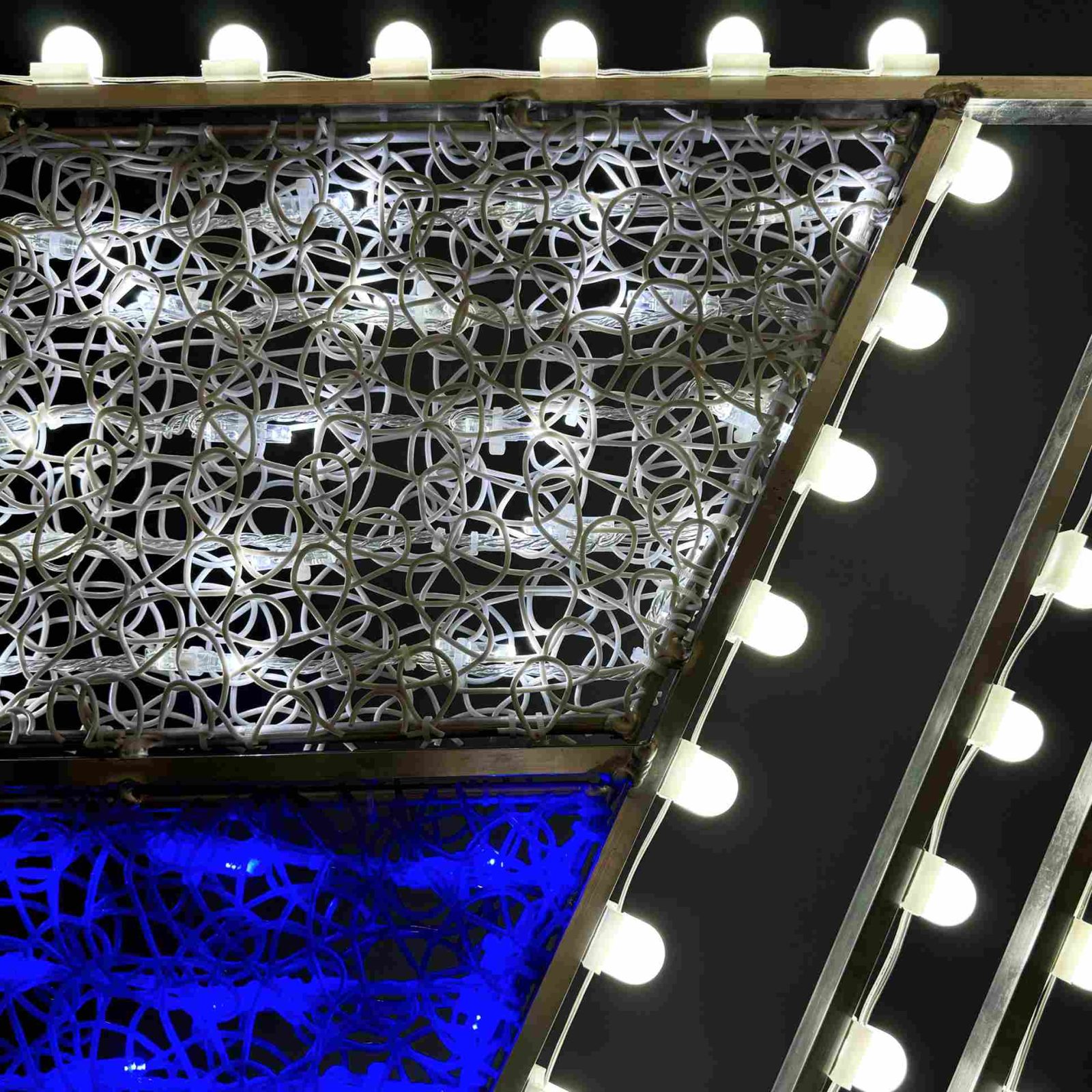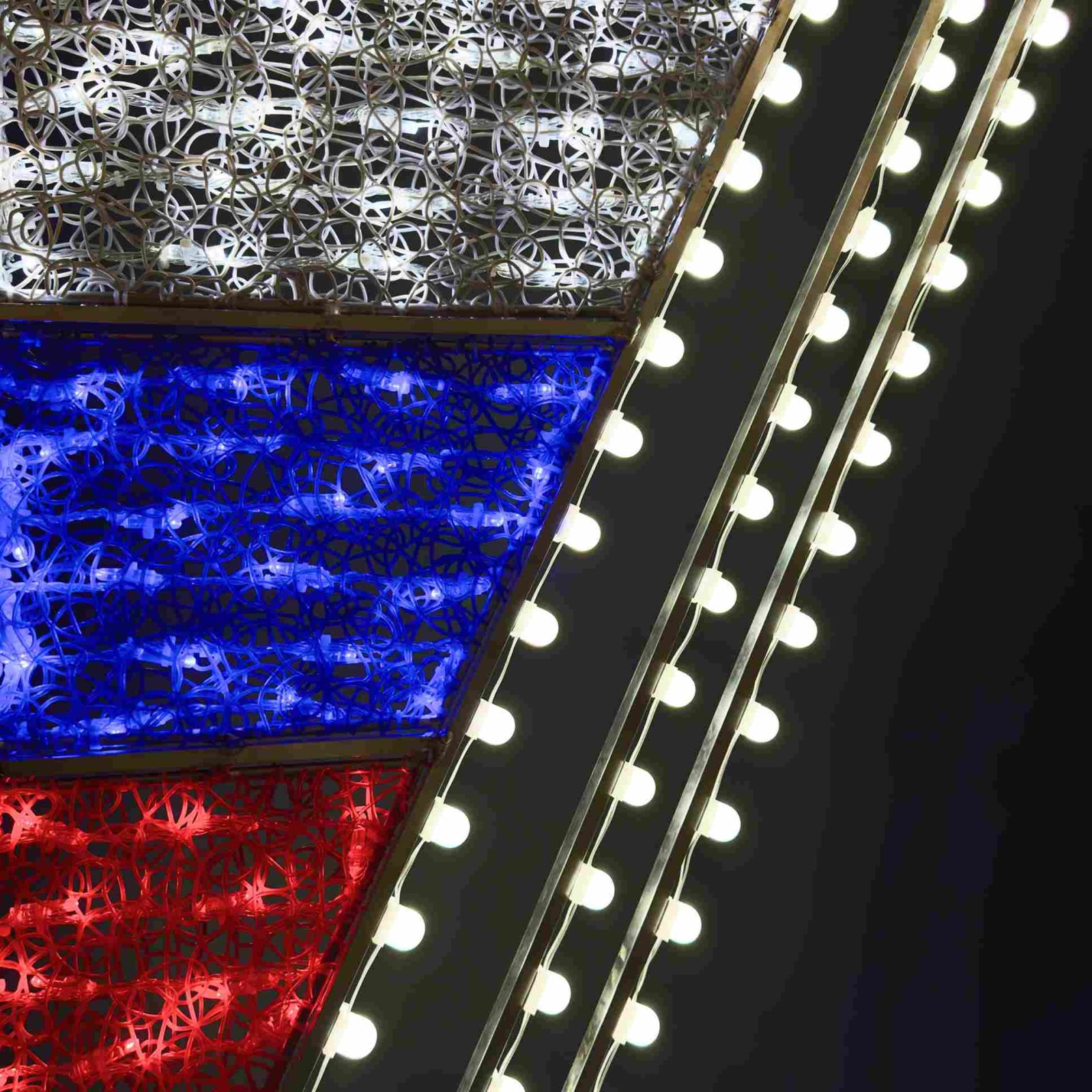 Цвет свечения — классический триколор. Яркий, но не режущий глаз. Вызывает ассоциации с государственным флагом и объединяет поколения. Особенно востребована на 9 Мая, в День Победы, а также ко Дню города, Дню России, юбилейным событиям и другим важным торжествам.