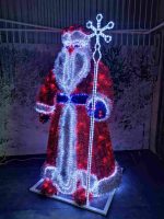 Световая фигура Деда Мороза воплощает главный символ российского Нового года в элегантном световом исполнении. Выбор высоты от 1,7 до 2,3 метра позволяет адаптировать фигуру под масштаб конкретного пространства и создать оптимальный визуальный эффект.