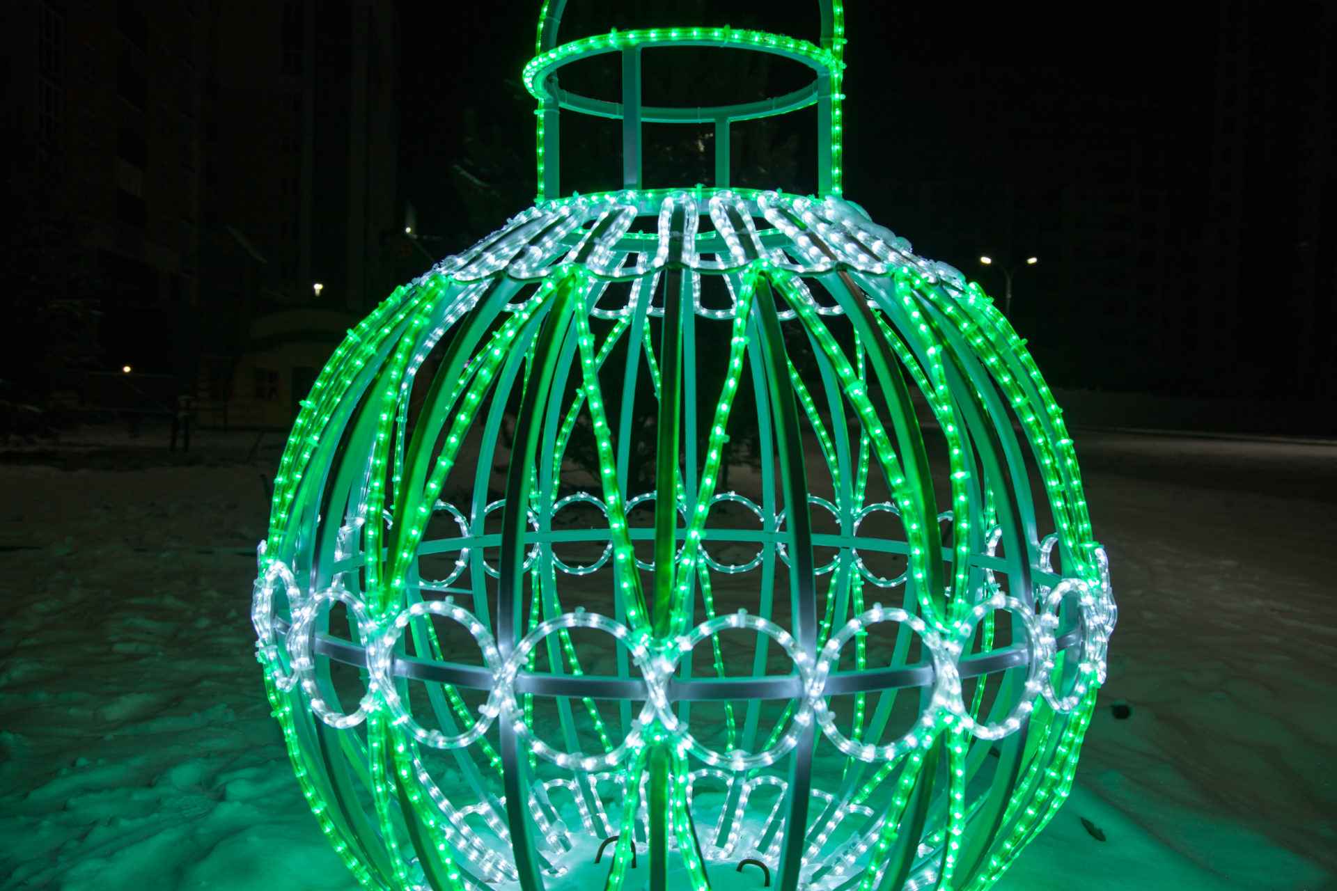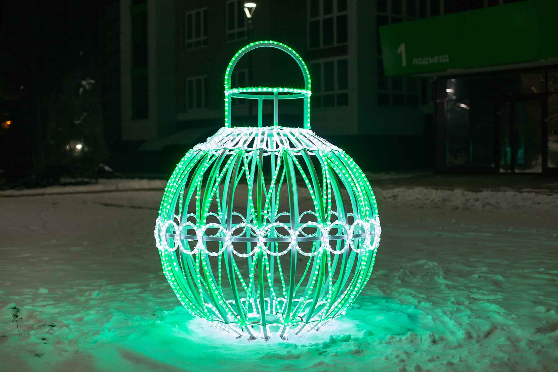 Её используют как элемент новогоднего декора, для украшения Дня города, корпоративных праздников и сезонных мероприятий. Световой шар не только задаёт праздничное настроение, но и работает как полноценный акцентный элемент благоустройства.