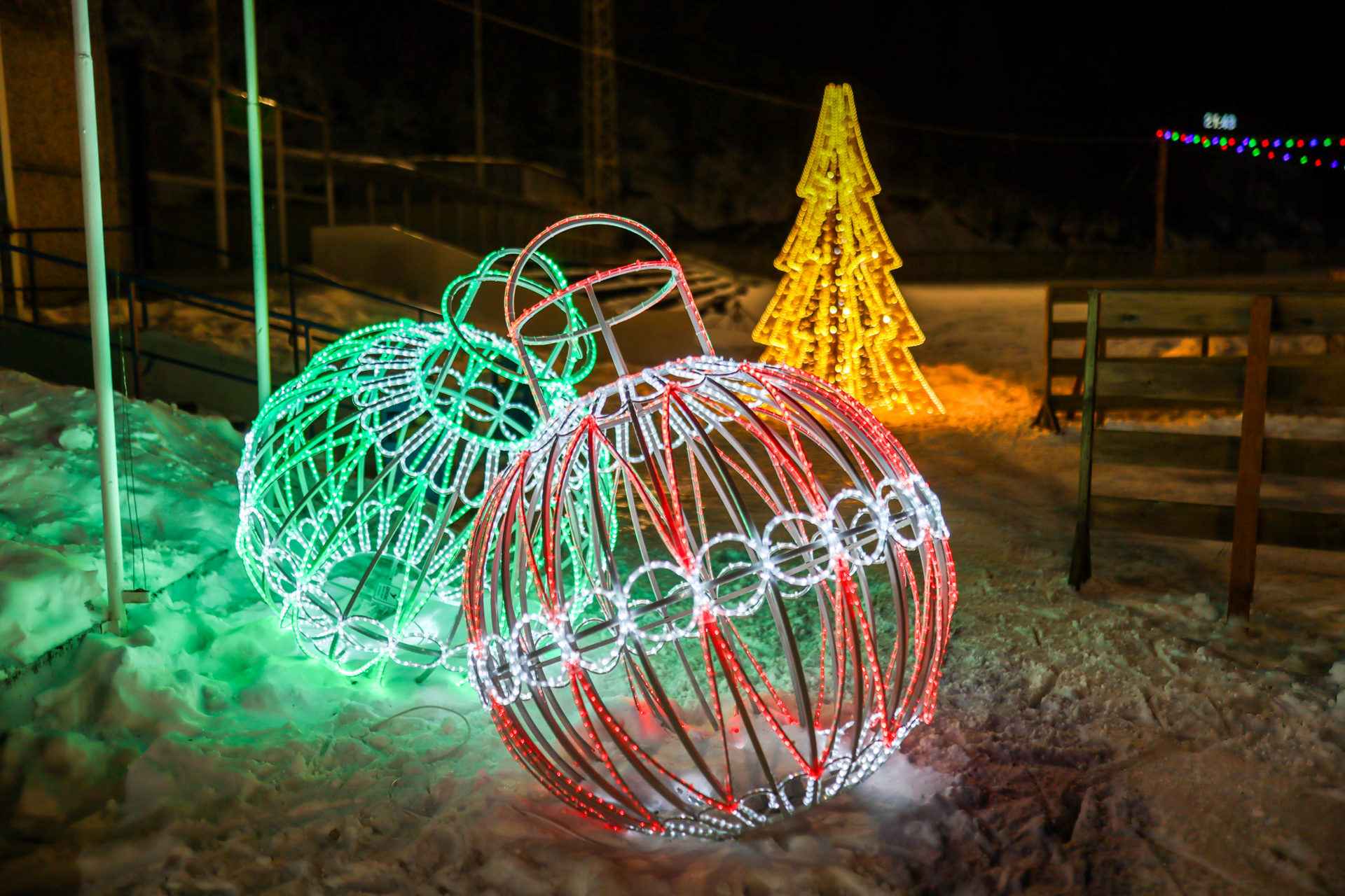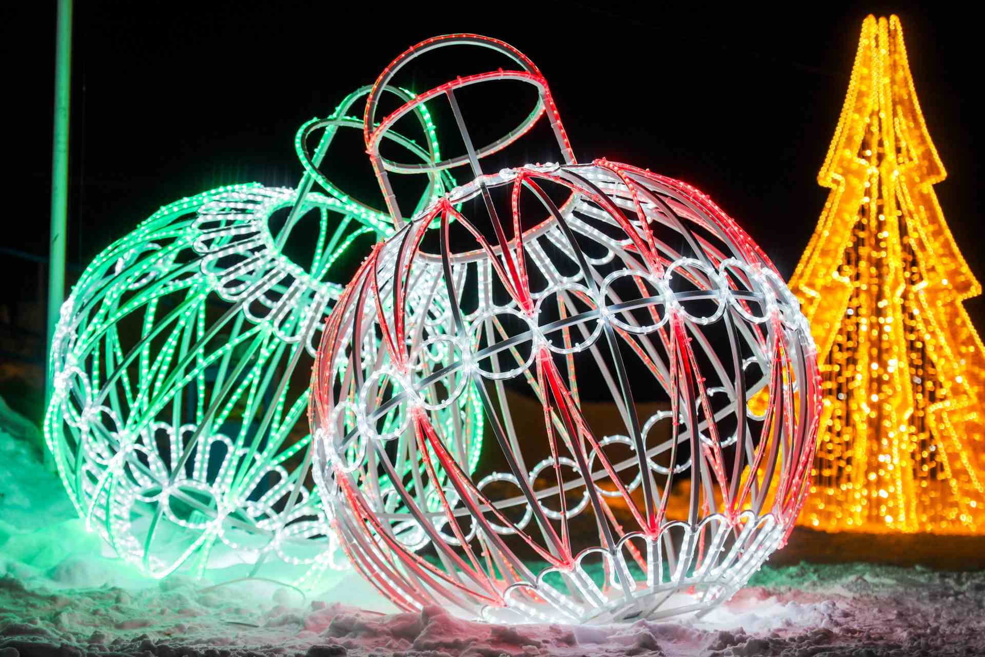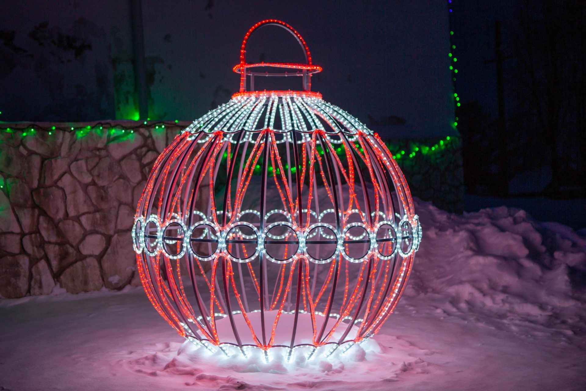 Такую фигуру используют в городских парках, на площадях, у входов в торговые центры и бизнес-здания, а также в составе больших новогодних инсталляций. Световой шар одинаково хорошо подходит и для временного праздничного оформления, и для постоянного акцентного декора.