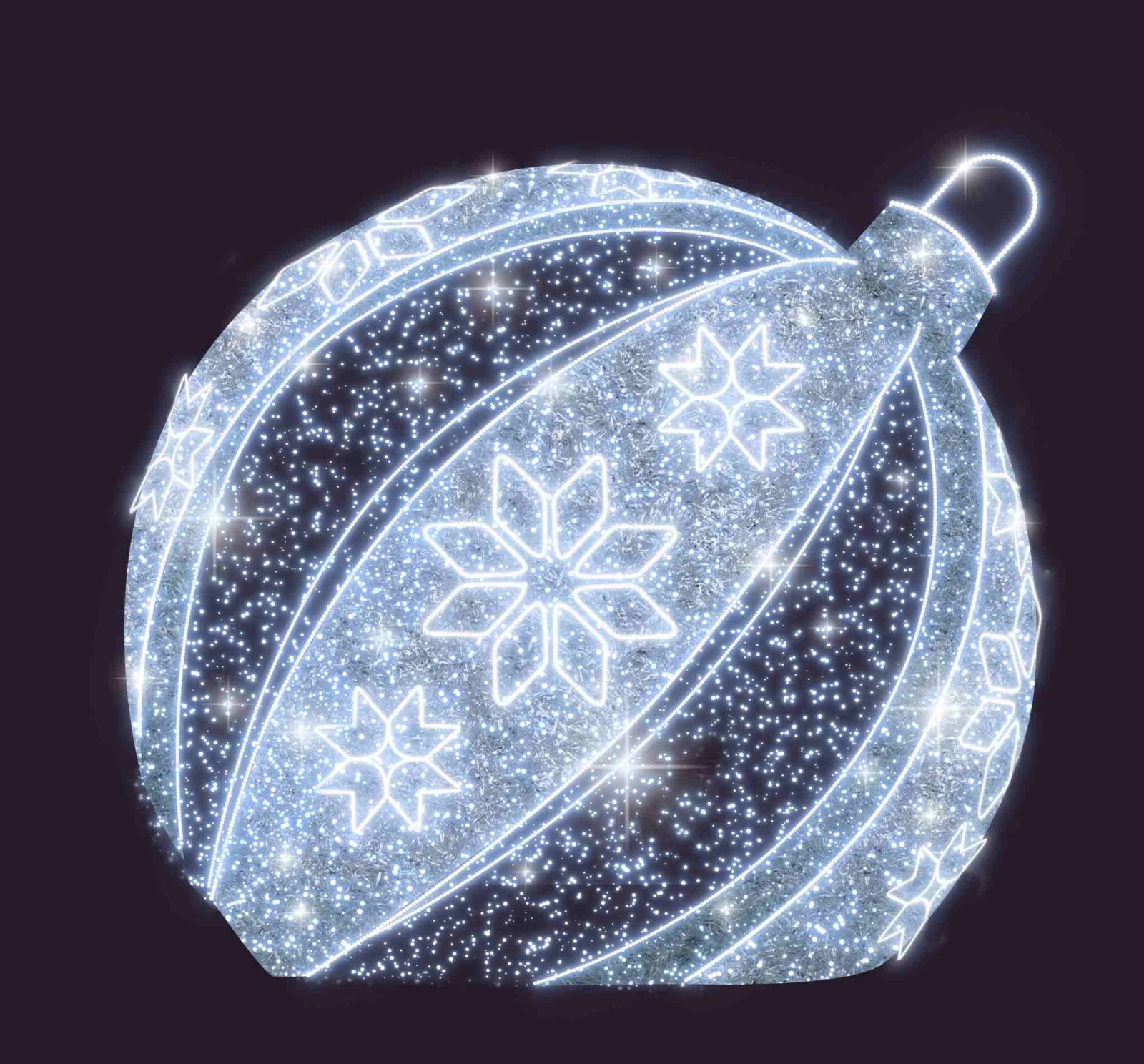 Световой шар JOYLED «СК-203» диаметром 5 метров — это масштабная декоративная фигура, которая задаёт праздничное настроение и становится центром внимания в любом пространстве. Серебряное свечение делает конструкцию особенно выразительной: оно ассоциируется с морозной свежестью, чистотой и зимним волшебством.