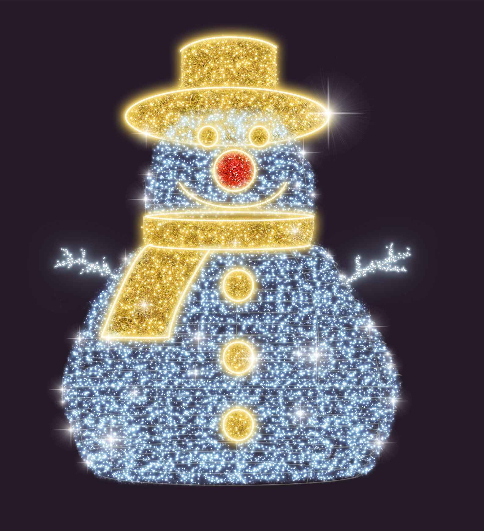 Световой снеговик СК-191 — это не просто фигура, а настоящая икона новогоднего настроения. Он мгновенно создаёт атмосферу уюта, детской радости и зимней сказки. Такой снеговик подойдёт для оформления городских улиц, аллей, входов в торговые центры и корпоративные площадки. Его часто устанавливают как центральный элемент фотозоны: фигура узнаваема, вызывает положительные эмоции и привлекает внимание прохожих.