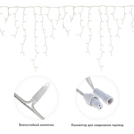 Защита IP67 — гирлянда выдерживает осадки, снег, сырость, кратковременное погружение в воду.