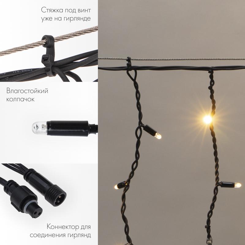Гирлянда Бахрома 5,6×0,9 м Тёплый Белый с Мерцанием, Провод Чёрный Каучук, IP67