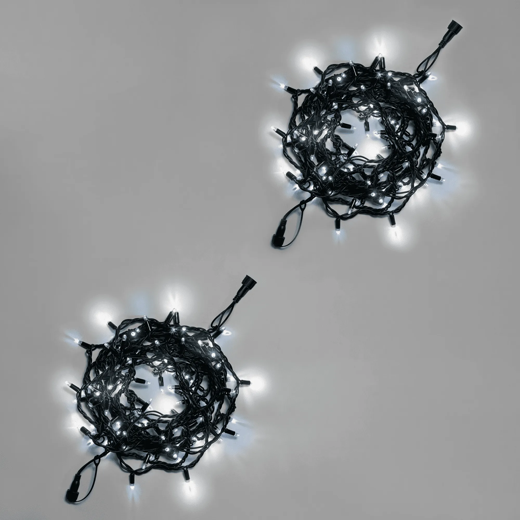 Гирлянда Нить 10 м (5+5) Белая с Мерцанием, 100 LED, Чёрный Каучук, IP65, INOX