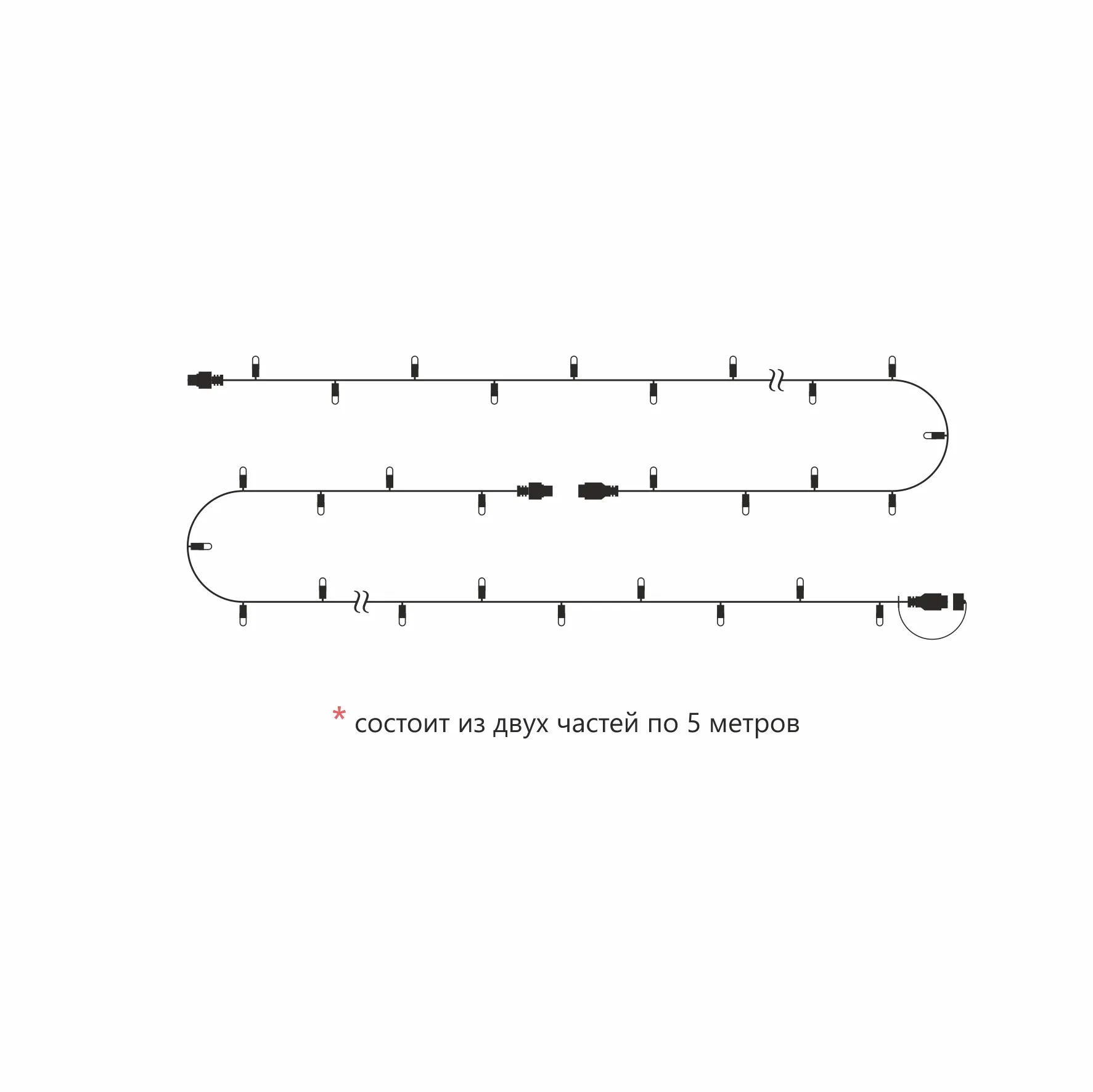 До 10 гирлянд можно подключать последовательно. Это удобно для больших фасадов, длинных заборов или объектов с периметром. Работает от одного шнура питания (в комплекте не идёт — приобретается отдельно).