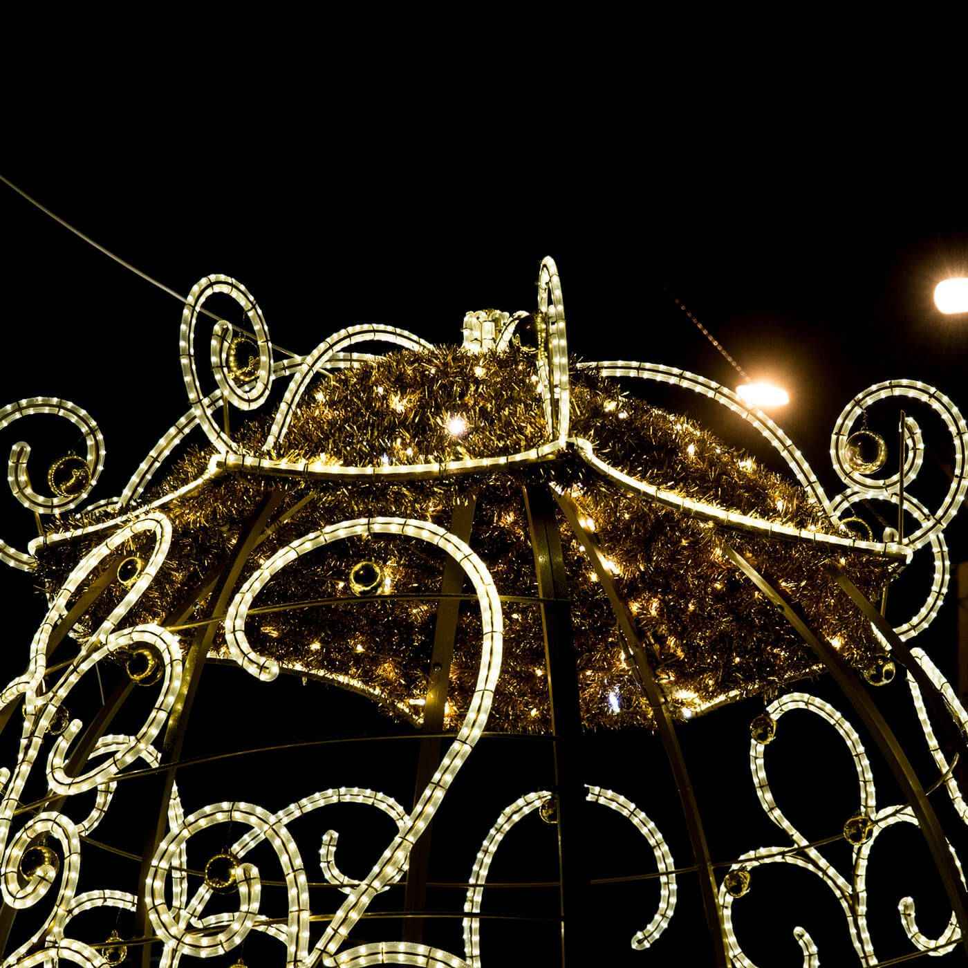 Световая 3D-фигура «Волшебная карета» — эффектное украшение городской среды на Новый год и зимние праздники. Объёмный алюминиевый каркас, золотое свечение, пылевлагозащита IP65. Выглядит сказочно, привлекает внимание детей и взрослых, работает как фотозона. Доступна в наличии и под заказ.
