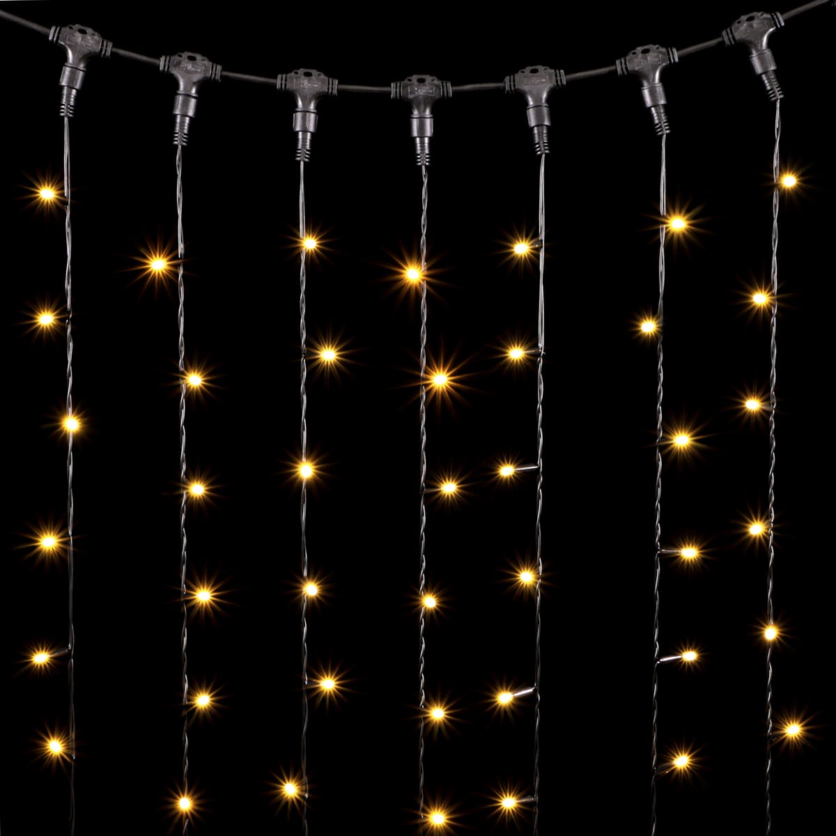 Гирлянда-занавес с колпачком 1×6 м в тёплом оттенке шампань создана для праздничного и круглогодичного оформления фасадов, витрин, входных групп и заборов. Благодаря декоративным насадкам-колпачкам каждая лампочка выглядит более выразительно, а свет приобретает мягкость и глубину. Это решение подходит как для частных домов, так и для городских объектов, ресторанов, гостиниц и торговых центров.