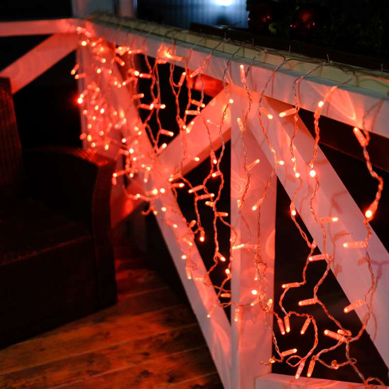Гирлянда-занавес 2×0.8 м с 160 светодиодами красного цвета создаёт насыщенное сияние и мгновенно привлекает внимание. Красный свет ассоциируется с теплом, энергией и праздничным настроением, поэтому эта модель идеально подходит для украшения фасадов частных домов, ресторанов, городских площадей и входных групп.