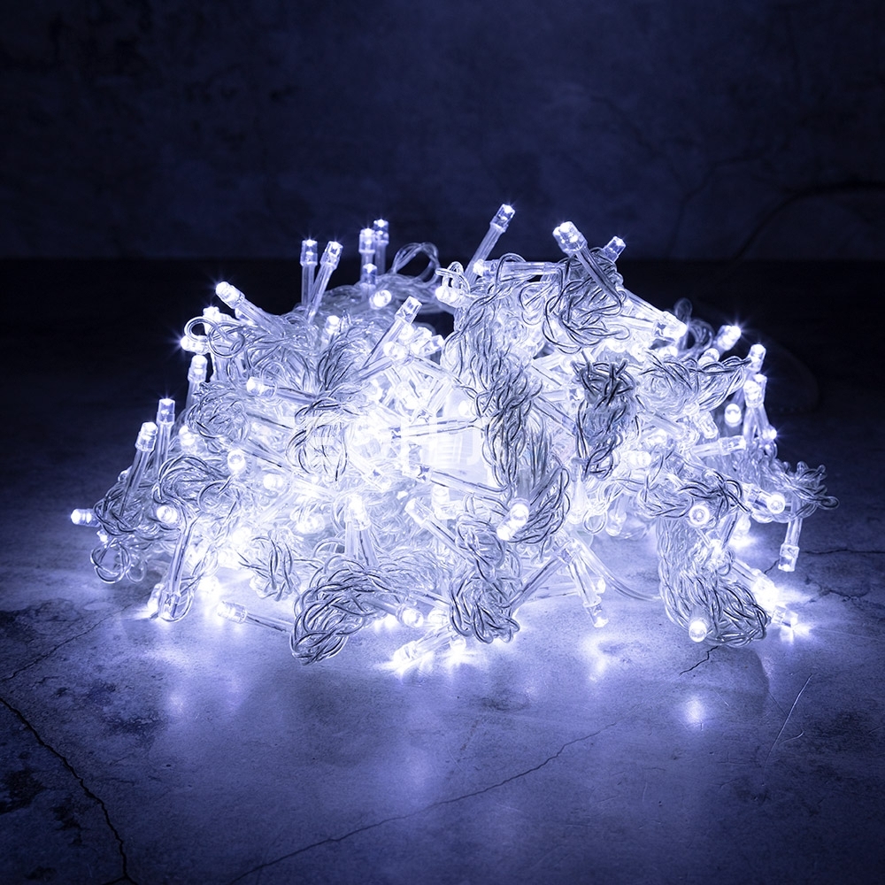 Гирлянда легко крепится к карнизам, стенам или потолку, не требует сложных инструментов. Благодаря прозрачному проводу её оформление выглядит эстетично и не отвлекает внимание днём. А при включении белый свет создаёт яркий, но ненавязчивый акцент.