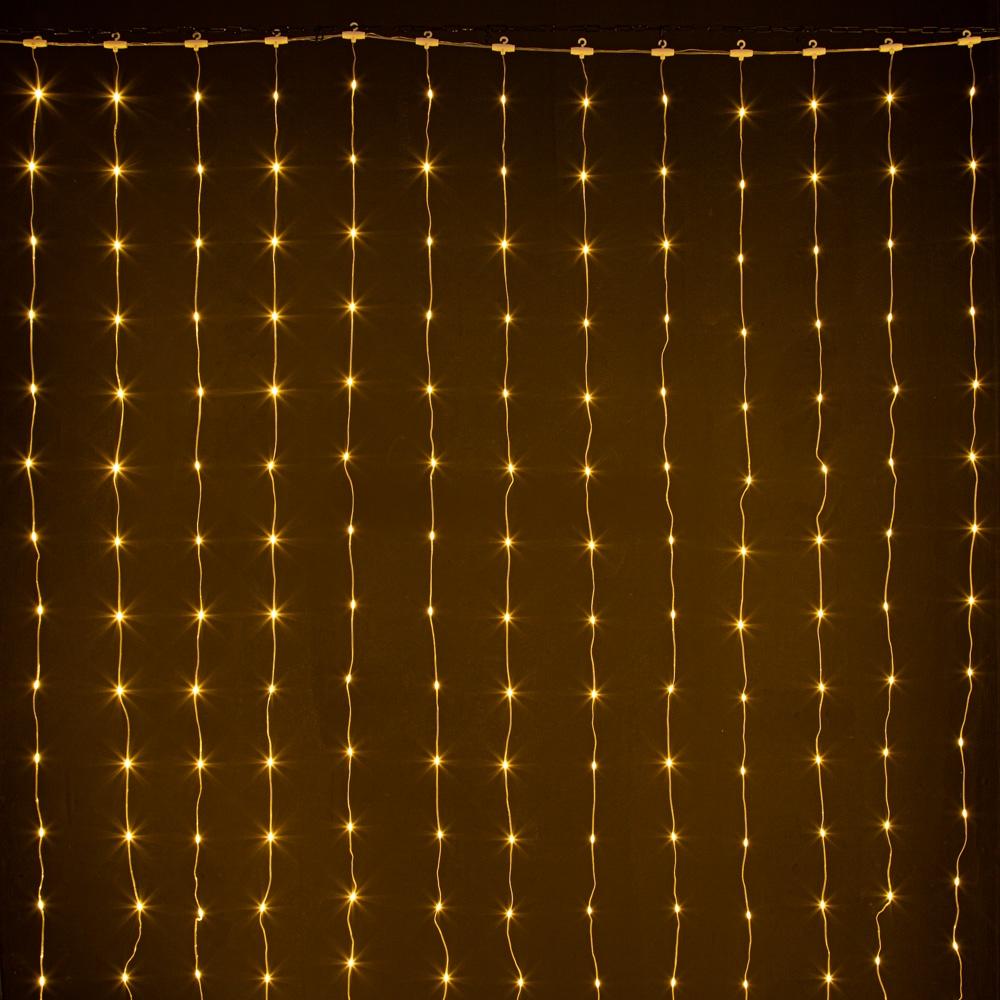 Гирлянда Занавес с каплями Росы 3×3 м, Тепло-Белый Статика, 576 LED, USB, IP20