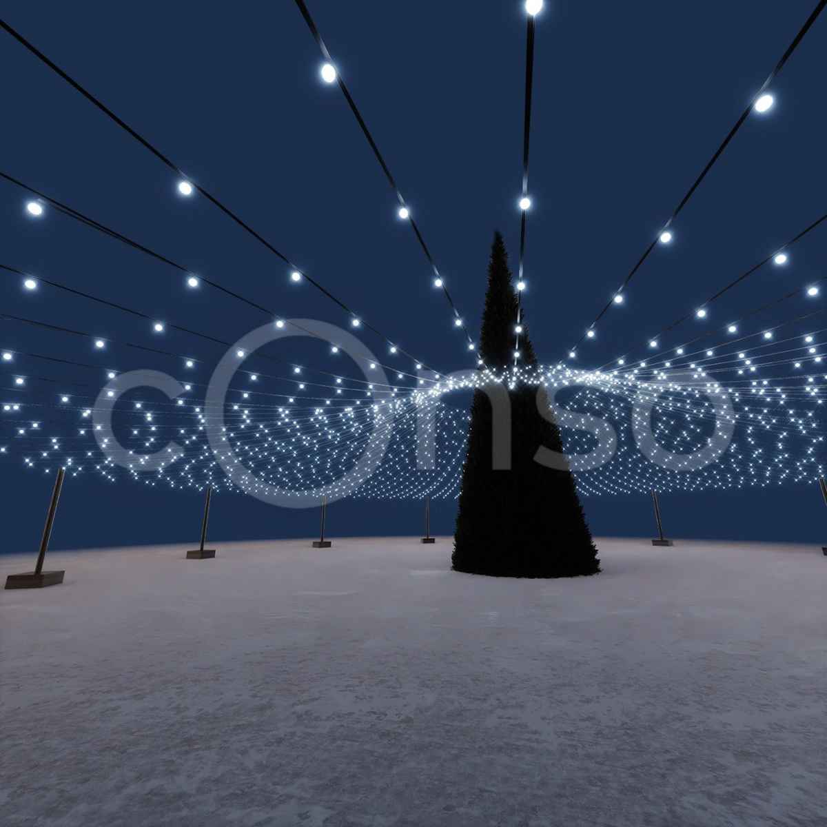 Яркое звездное небо – отличный вариант, что бы дополнить украшение площади к Новому году.