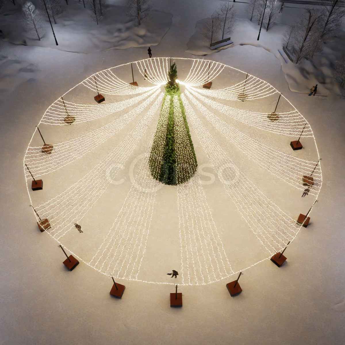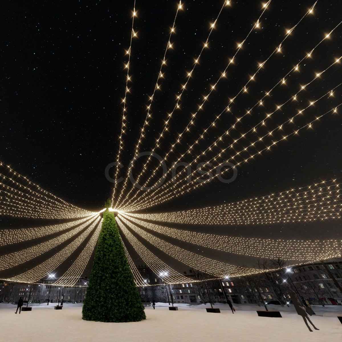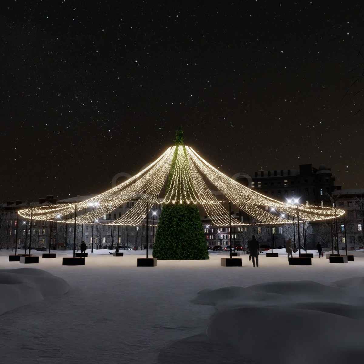 Яркое звездное небо – отличный вариант, что бы дополнить украшение площади к Новому году.