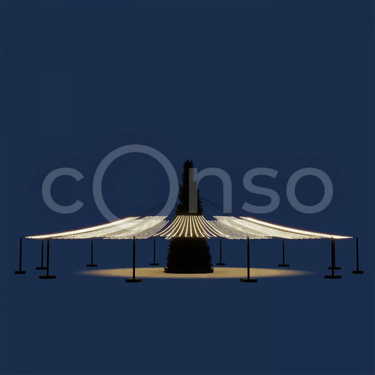 Яркое звездное небо – отличный вариант, что бы дополнить украшение площади к Новому году.